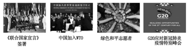 应对全球性问题需要各国的团结协作。《联合国家宣言》的签署是世界反法西斯国联合起来共同打败了法西斯国家;中国加入WTO推动了世界经济全球化的发展;绿色和平志愿者则是致力于环境保护和世界和平;面对新冠肺炎在全球的肆虐,G20国家携起手来共同应对。
