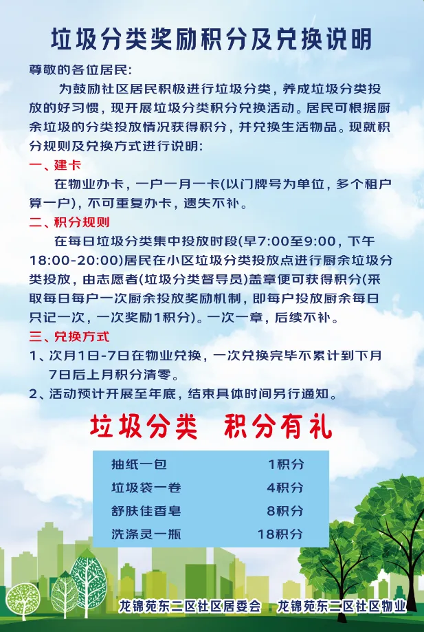 留言功能上线啦!文末有社区垃圾分类积分兑换奖励活动,多种礼品等您来换~