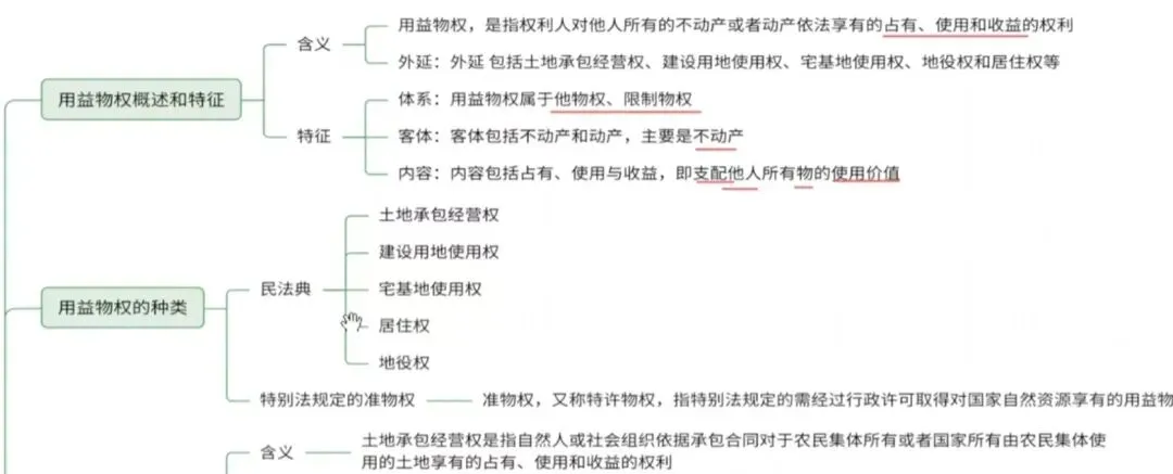 物权:物权的种类、物权的变动、所有权、用益物权、担保物权等。