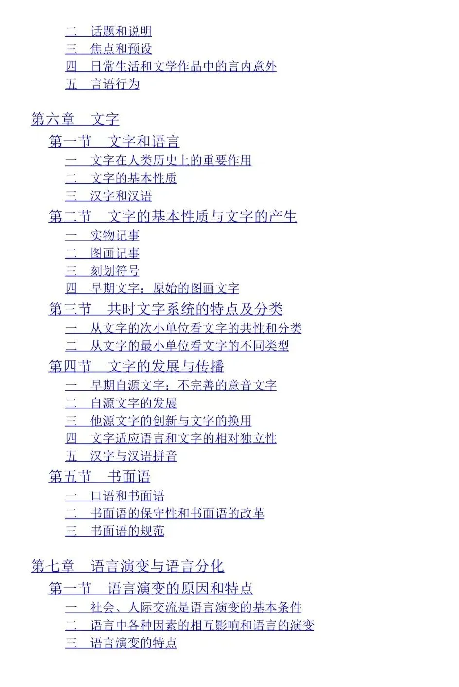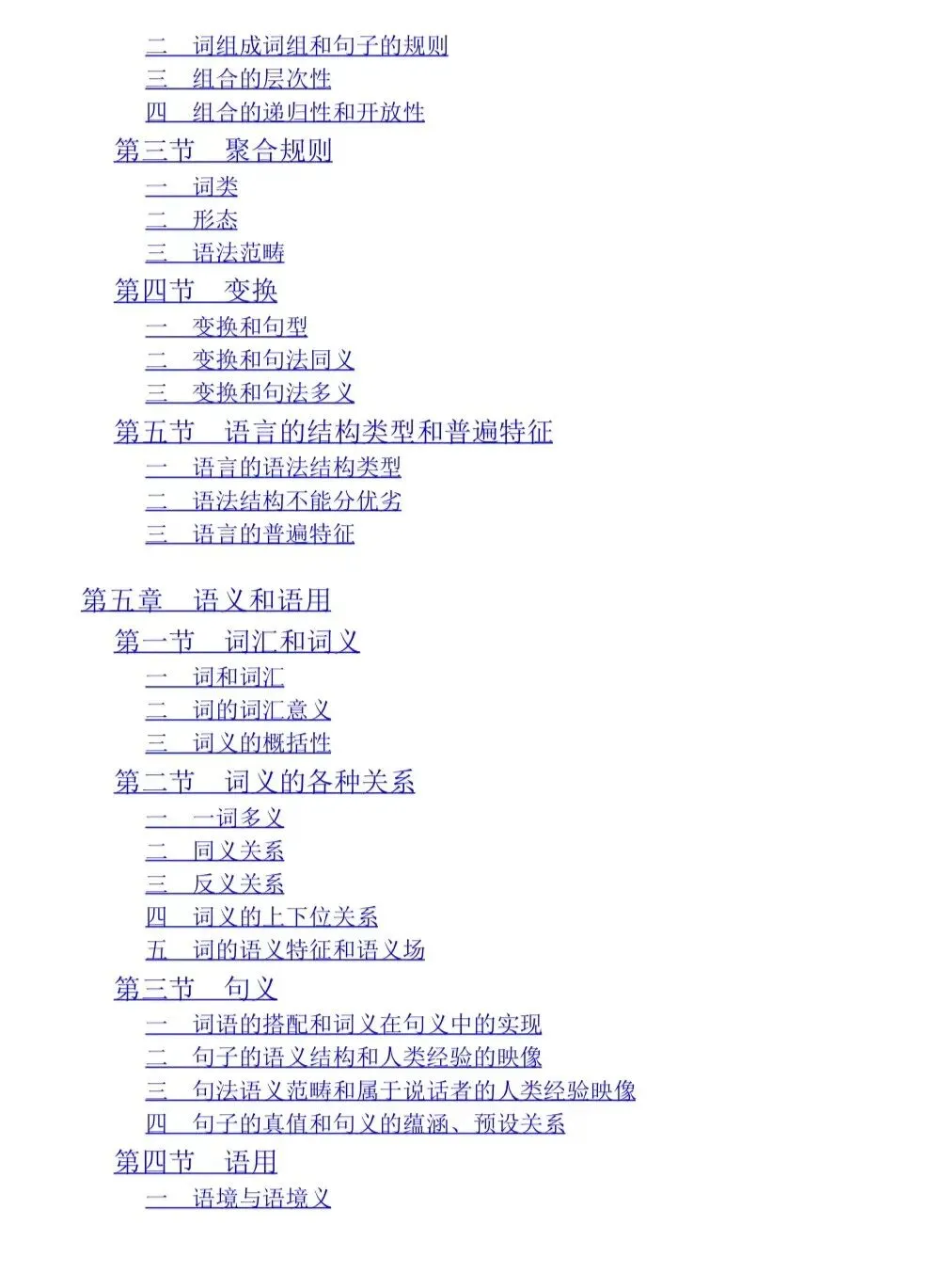 通过目录可以看到这本教材全面而系统地介绍了语言学的相关理论、概念和研究方法,内容涵盖了语音学、语法学、语义学等多个领域。其中语音和语法是《语言学纲要》这门课程的核心章节。尤其是在音位和音系这一小节中,由于涉及到音位学中的一些较为抽象的概念,如对立和互补、音位变体等,是需要汉语言er重点记忆和理解的。