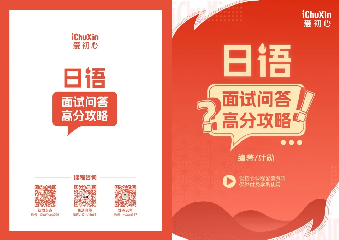 炸鸡老师:各位同学大家好,日语面试作为日语专业考研・日语专业保研考核过程中的核心环节之一,不仅是检验各位考生语言素养与专业功底的试金石,更是展现个人综合素养的重要舞台。《日语面试高分攻略》这份资料的编写初衷,正是为了帮助那些即将面临日语面试的学子们,提供一份详尽的指导和支持。本资料精心挑选了一系列在日语专业面试中常见的问题,并提供了详细的回答范例,旨在帮助学子们理解如何构建一个有说服力的回答。希望通过阅读《日语面试高分攻略》,每位学子都能够在面试中发挥出自己的最佳水平,在学术发展上能够迈出坚实的一步。衷心祝愿每一位同学都能在日语面试中取得高分,实现自己的梦想和目标。
