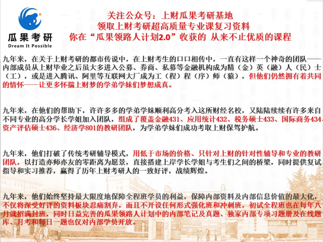 课程详情请淘宝店铺搜索【上财瓜果考研基地】