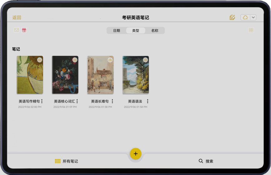 我们可以用云记新建一个英语笔记文件夹,在文件夹内新建4个笔记。
