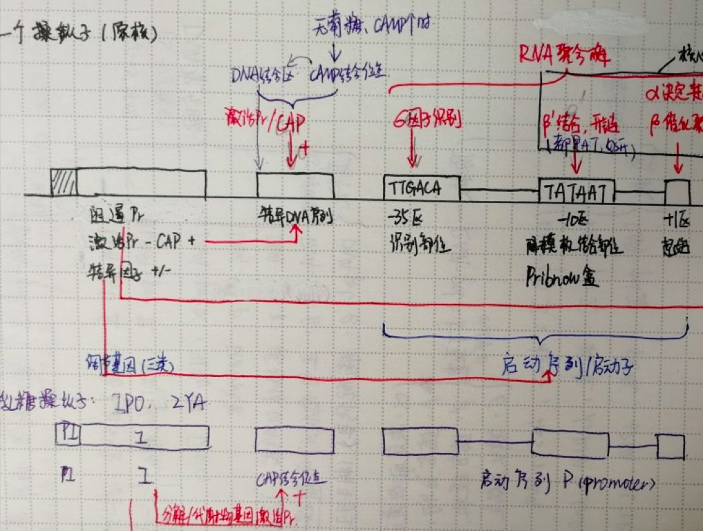 生化也是可以画画示意图的,比如让人头大的基因表达调控,DNA 与 RNA 的合成。画好序列的位置和名称、别称,标清楚各个因子或酶、蛋白、元件的作用部位,学会用不同颜色的笔,区分正负调控等,整个过程就一目了然了,怎么考都可以应对自如。