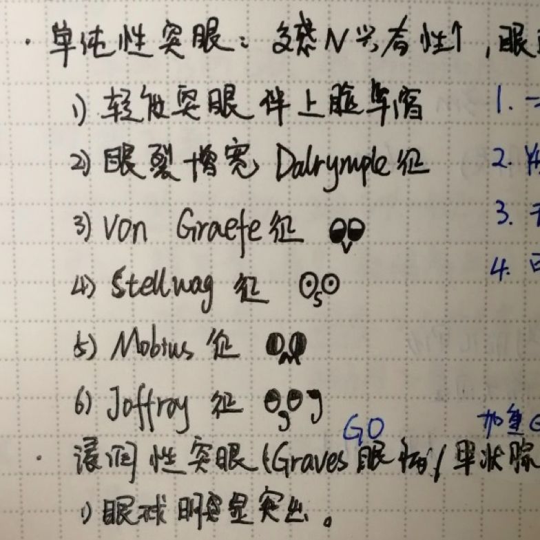 此外,笔记中还可以画一些小图助记:这些眼征后面萌萌哒的表情,你能领会到精神不?提示:包括了体征的表现与名称首字母。