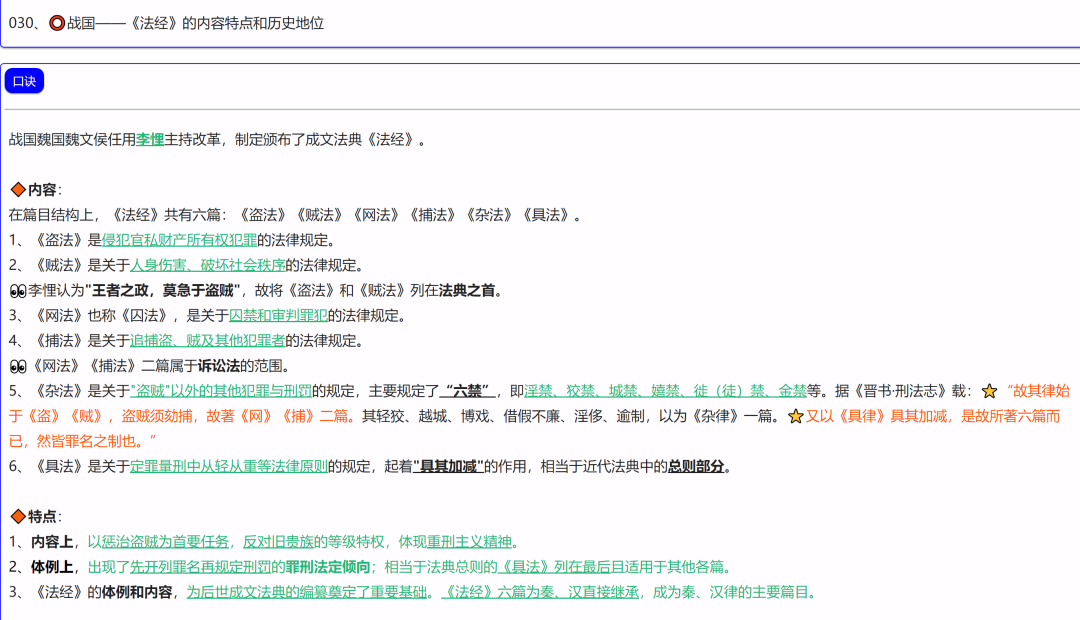 十几年来,南京师范大学法学学硕考研中法理学科目的参考书均是以公丕祥教授的《法理学》为主,无论采用第二版还是第三版,核心内容没有变化,研究近几年的法理学试卷,不难发现法理学科目“重者恒重”的学科特点。对于法理学来说,最直接、高效的复习方式便是在阅读参考书目的基础上理解内涵、抓住重点、多轮背诵。本笔记便是辅助各位考生在阅读参考书目的同时抓住重点,方便后续的背诵。通过笔记阅读,能够有效掌握书本知识的考查方式和考察内容,从而更有针对性地复习。