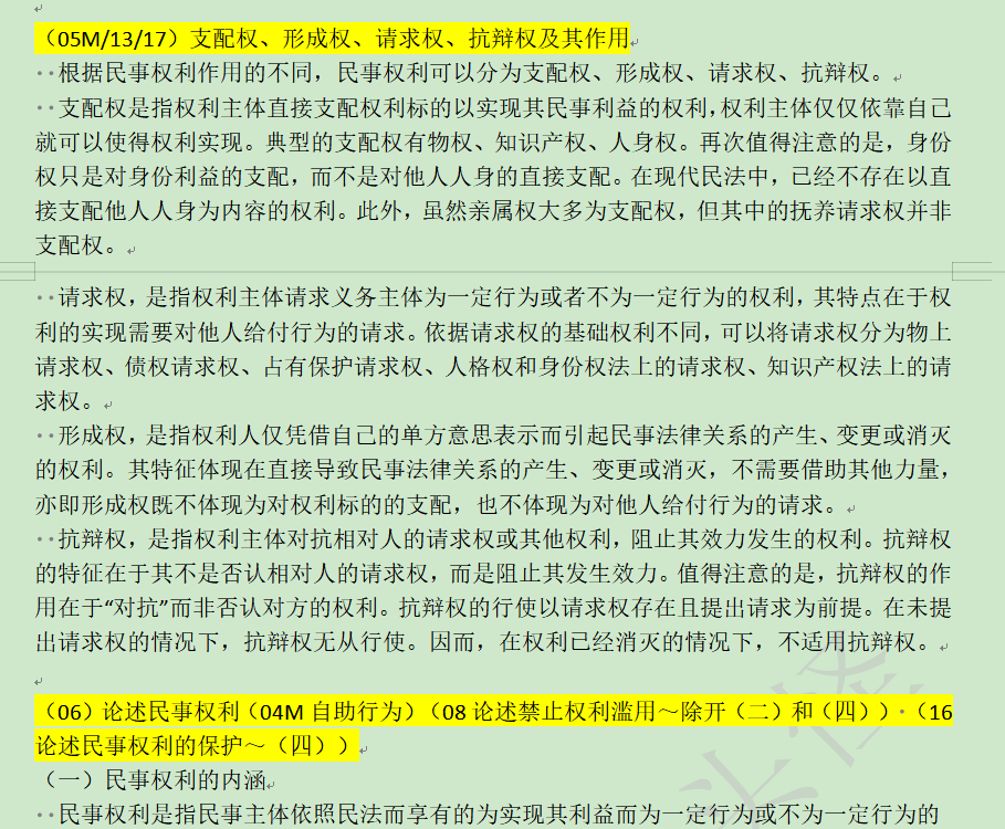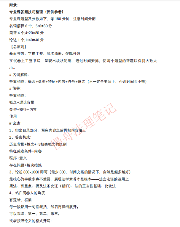 法硕(非法学)考研笔记,亮点如下:①基于《考试分析》并补充讲义内容;②区分主客观题考点,使背诵更有侧重点;③重难点高亮;④考点式排版;⑤补充对应考点的真题及分析
