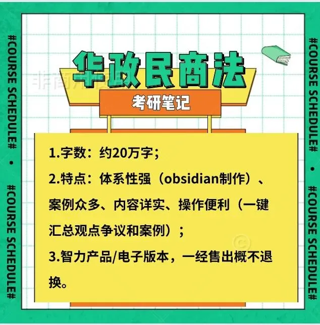 “华东政法大学民商法考研笔记”,该笔记体系性强(obsidian制作)、案例众多、内容详实(约20万字)、操作便利(一键汇总观点争议和案例),也可用于日常民商法考研之用~