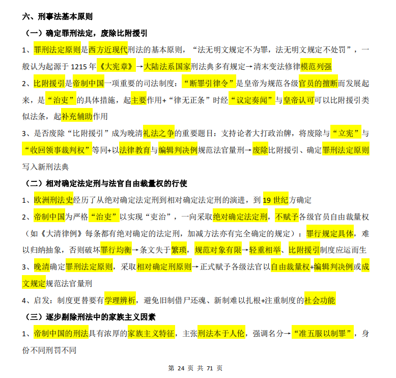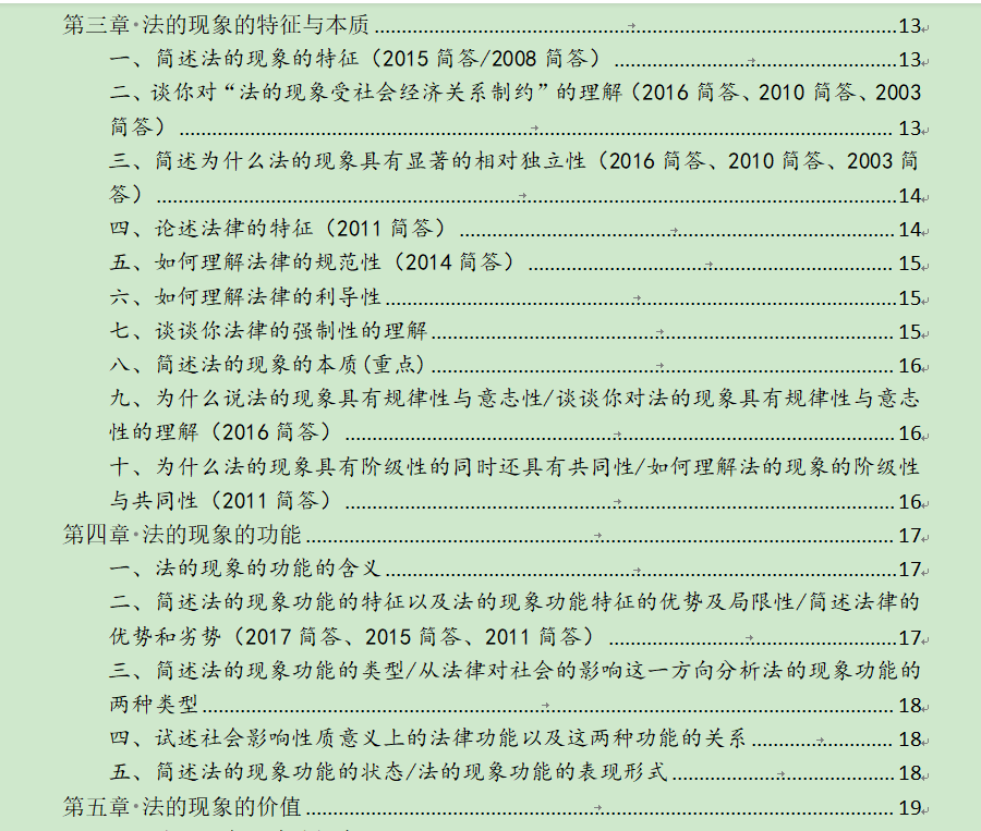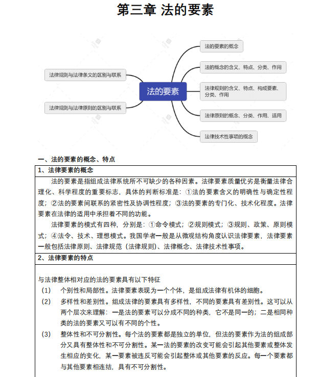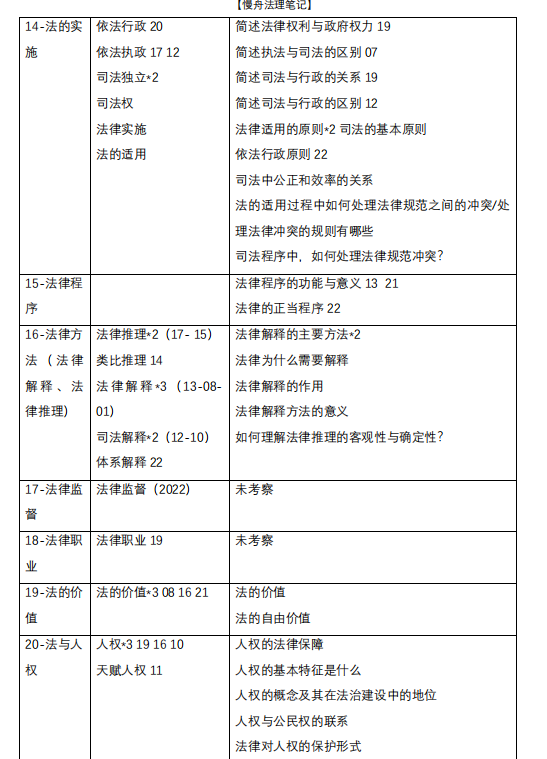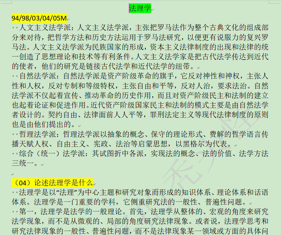 法理参考了张文显《法理学》、马工程《法理学》 和周永坤《法理学:全球视野》,以马工程《法理学》的体系,补充了张文显和周永坤的观点,重点指向明确,又为论述题提供了丰富的观点支撑,共108页。