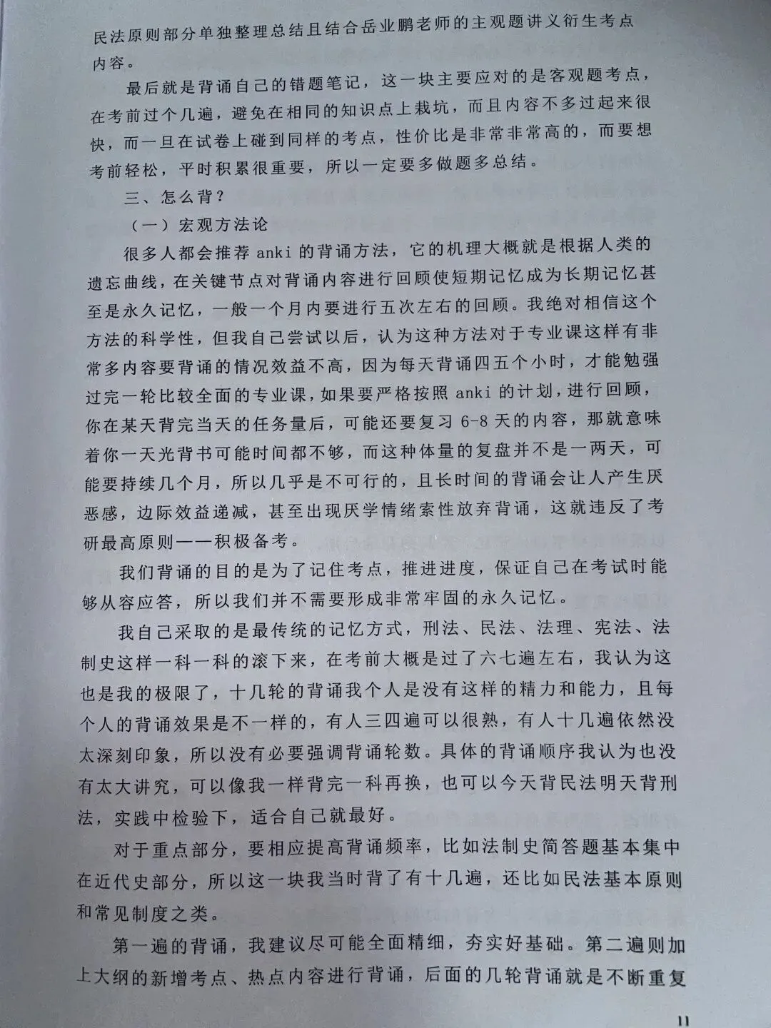 吉林大学法学学硕初试中,对民法的考察较为基础,应当以马工程教材为重点复习对象,学有余力的情况下可以关注民法典中新增修的制度内容。本讲义中会在考察过的知识点旁标注具体年份,并对需要背诵的内容旁标注重点二字,共计125页,请大家务必对以上内容做重点背诵。