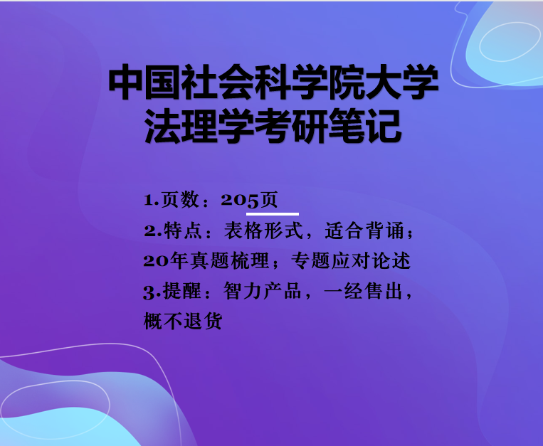 第二套由2020年考研人大刑法专业前五的学姐制作,笔记内容详实,详细整理了人大考研的参考书目,包含法理(14万字、199页)、宪 法(16万字、140页)、法制史(9万字、141页)、民法(24万字、405页)、刑法(20万字、500页)、知识产权法(9.5万字、144页)六个科目。亦可用于本科期末考试复习、日常拓展学习以及清华学硕备考。作者介绍及经验贴可见:《人大刑法考研&法考经验帖:念念不忘,必有回响》。