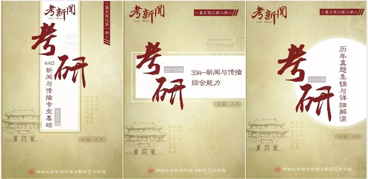 2018届的小伙伴,选择好心仪的高校,还需要一套精练、重点突出、包含真题解析的笔记来助你一臂之力。考新闻人大、复旦、湖大考研笔记已经在考新闻淘宝店铺(jm79.taobao.com)热销中。此外,考新闻还将出品暨南大学、华南师范大学、陕西师范大学的考研笔记,敬请期待。