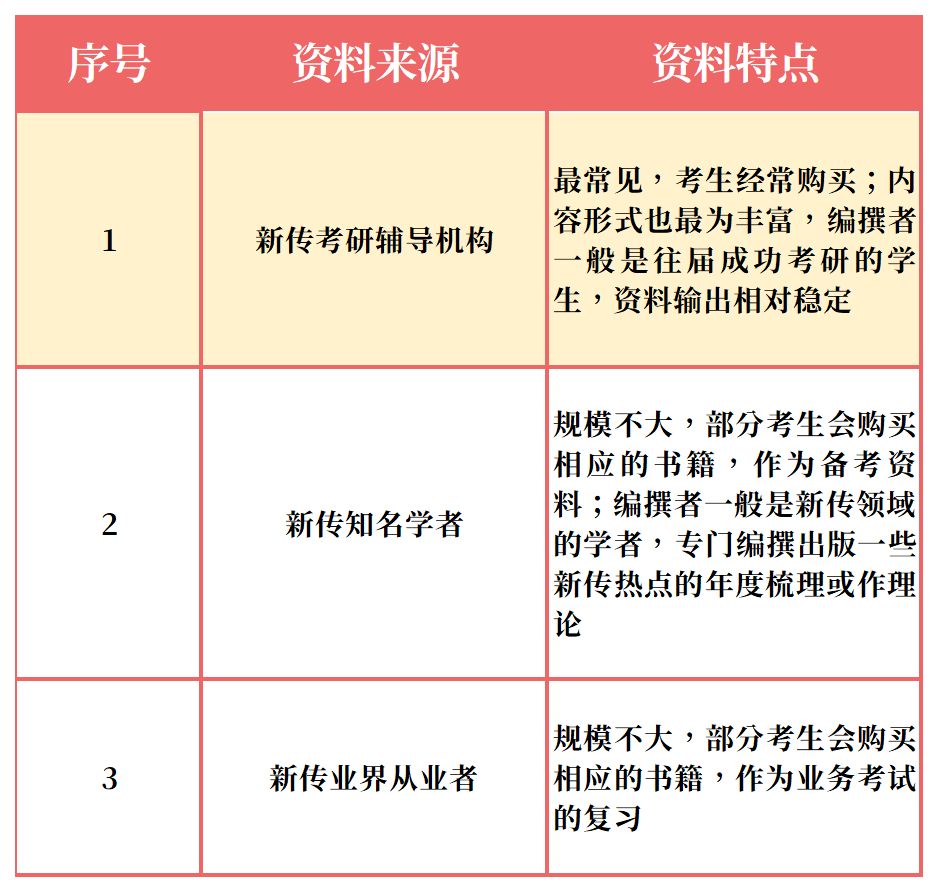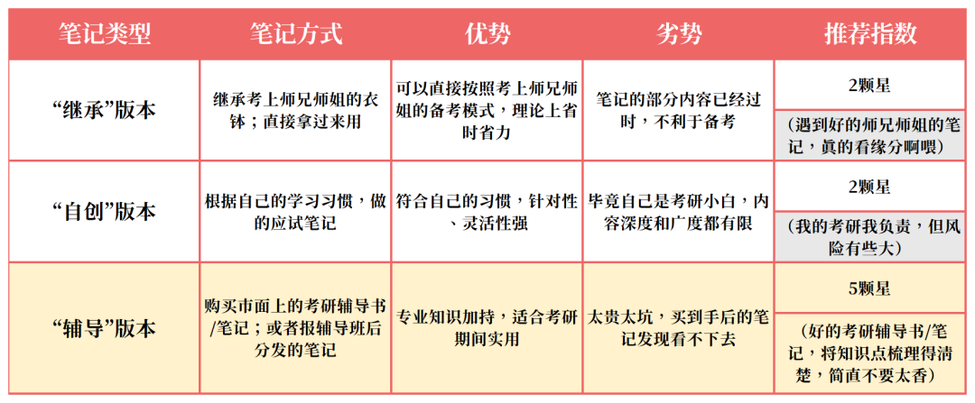 表1.新传考研笔记的不同选择