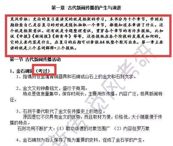 史论的三本书讲解每章都有学姐亲自手写的完整框架图,帮助你轻轻松松记住新闻史的脉络。