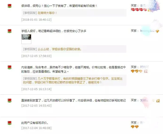 市场上的笔记鱼龙混杂,还有一些人会冒充自己是考上的学长学姐进行售卖笔记,导致学弟学妹们上当受骗。所以请学弟学妹们注意,无论你在哪里购买笔记,请认清店家身份或者售卖者的身份。千万不要因为贪小便宜,买到不好的笔记吃了亏。一些淘宝店铺售卖很多很多专业课的资料,没有售后服务,你在学习过程中遇到问题也无法进行解答,对于笔记的内容店家自己的一知半解,如何给你真正的专业的考研指导呢?所以请大家一定擦亮眼睛,顺顺利利地考上研究生。