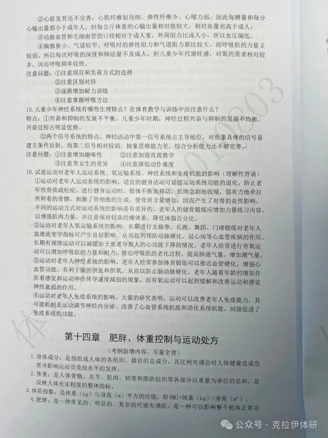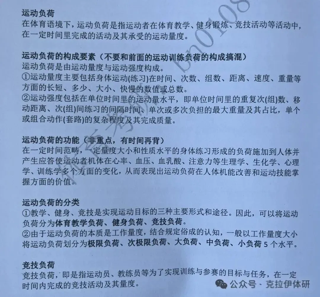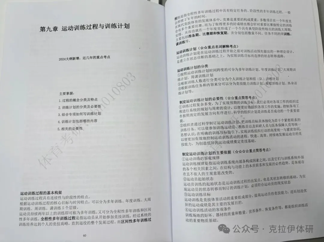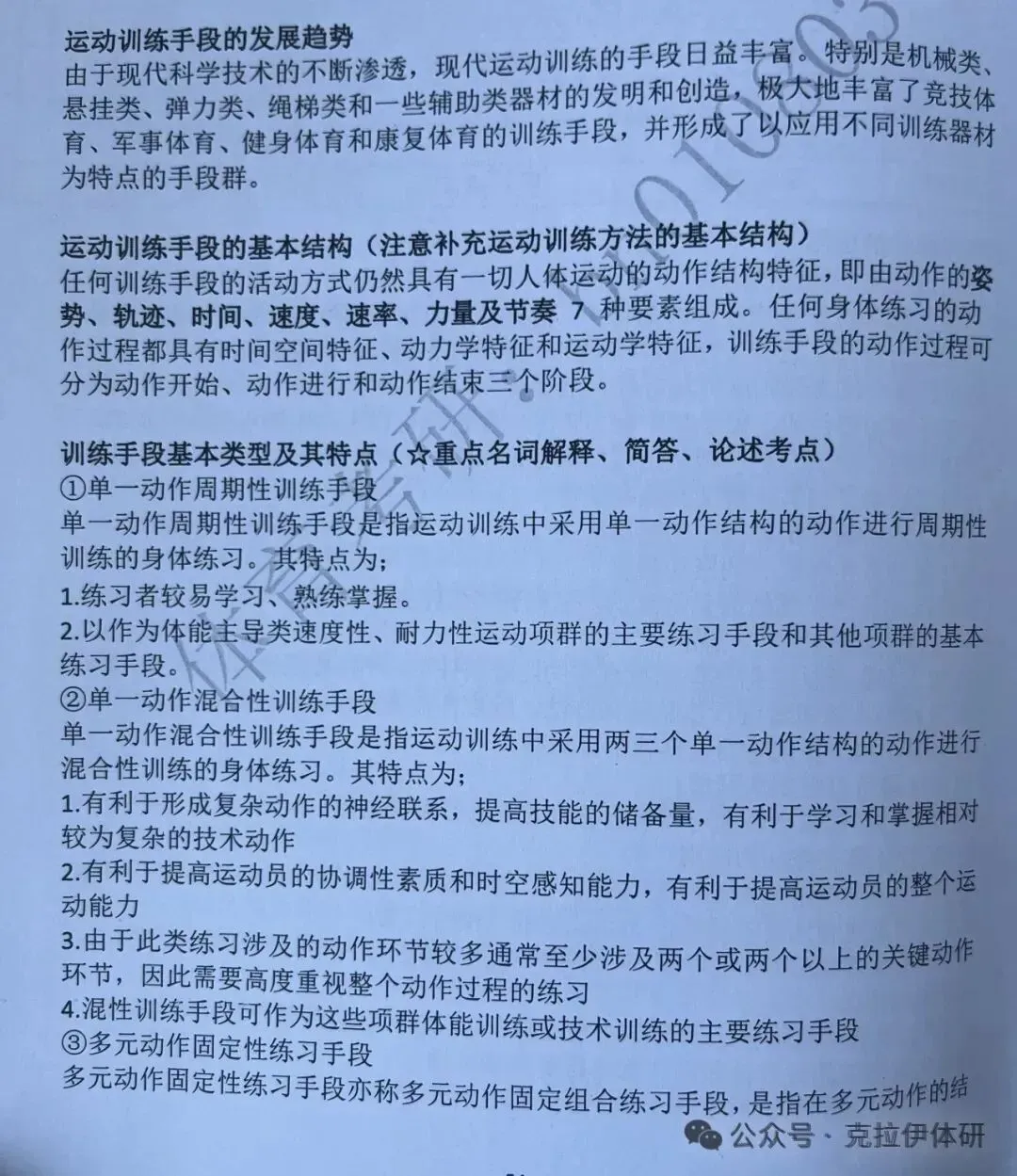 其中部分繁杂点(如训练方法的应用特点)用了表格形式整理,方便背诵。最新考纲中新增加的考试范围,今年也补充在了资料内。