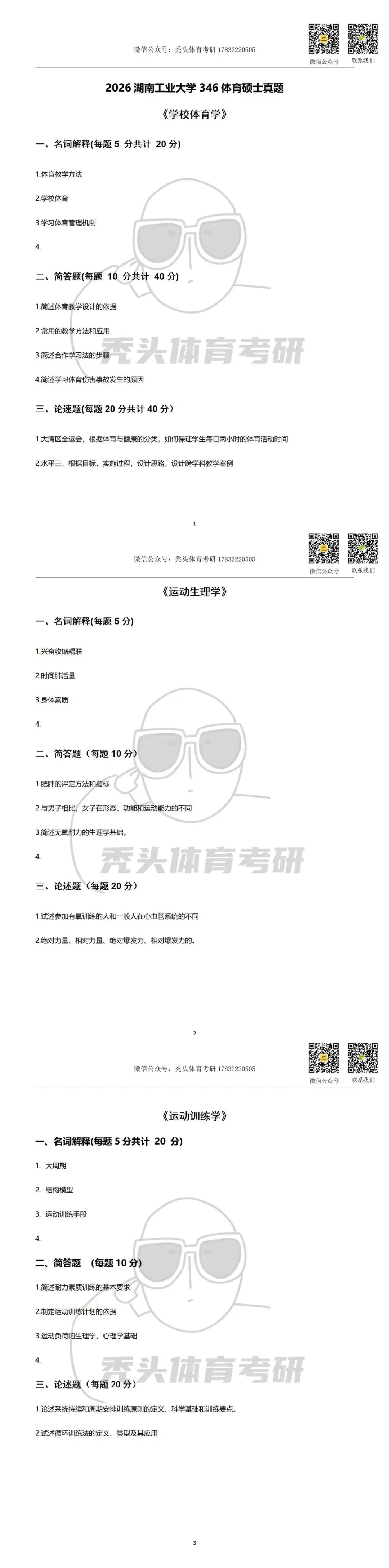 >26体育考研真题丨湖南工业大学346体育综合初试真题(2026)