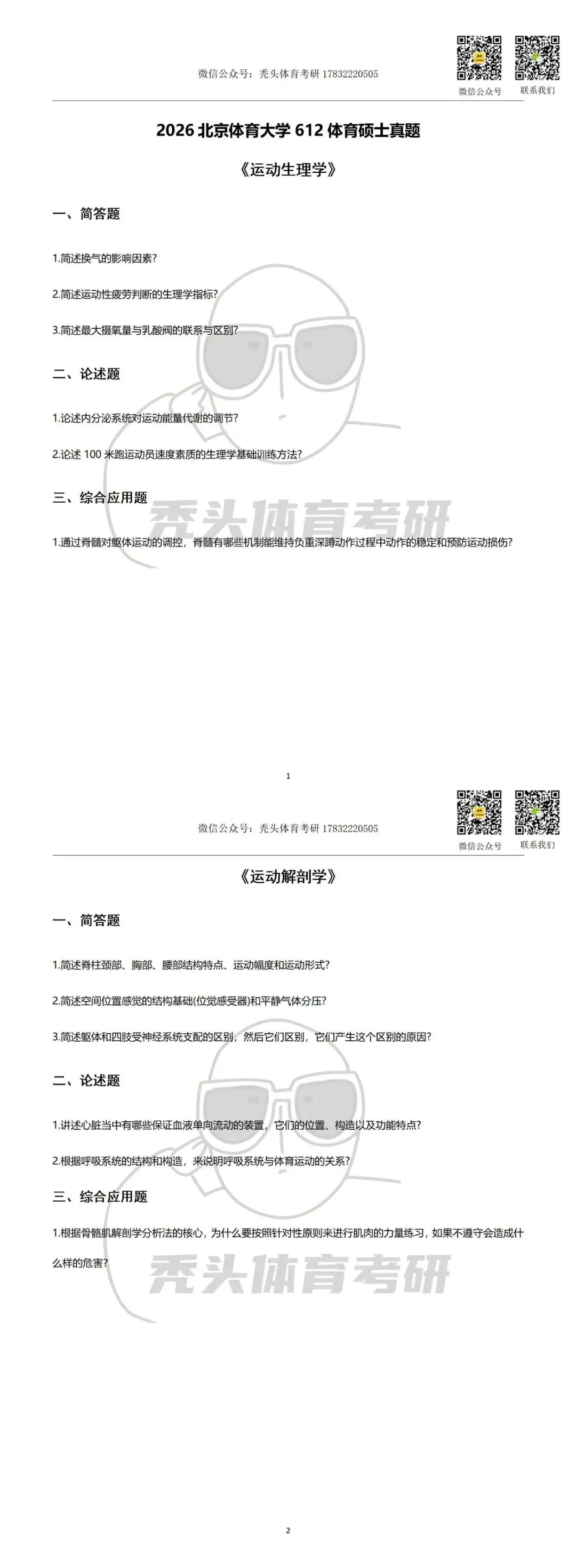 >26体育考研真题丨北京体育大学612体育综合初试真题(2026)