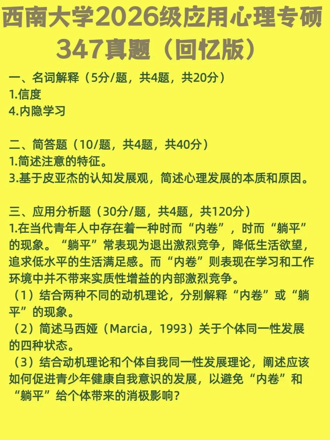【心理学考研院校真题回忆】浙江师范大学