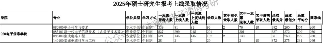 电子信息学院25考研报录情况如下: