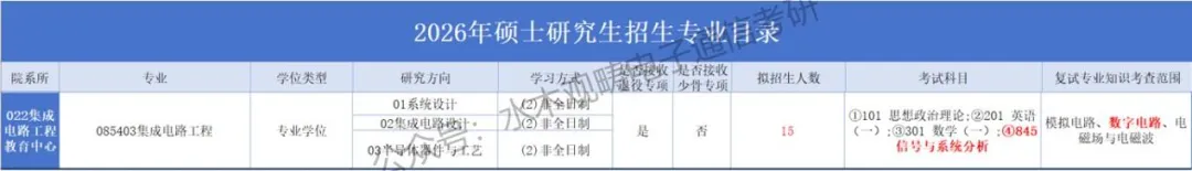 ★085403集成电路工程拟招生15人!(非全日制)