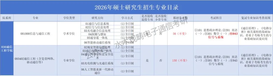 ★085402通信工程(含宽带网络、移动通信等)拟招生150人(较去年不变)!