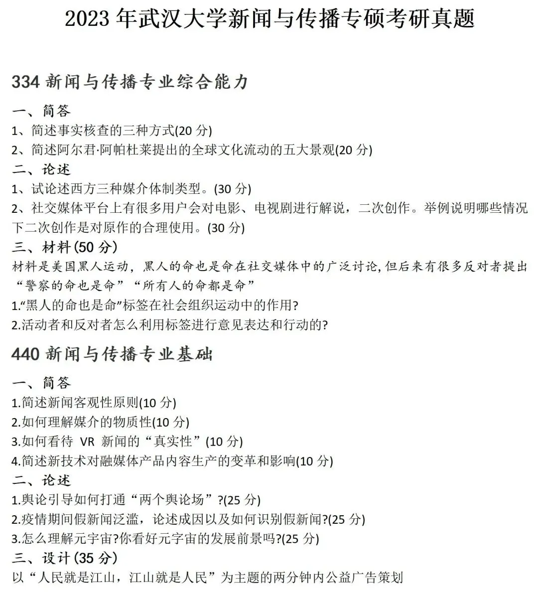 >武汉大学新闻与传播考研真题2023