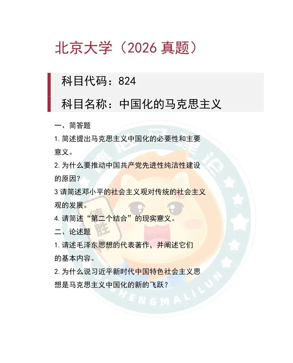 刚刚结束的2026年北京大学马克思主义理论研究生入学考试,其真题再次体现了北大作为思想理论高地的前沿性、基础性与思辨性。德胜教研团队在第一时间为各位同学带来深度、精准的解析,助力复试备考及27届考生方向把握。
