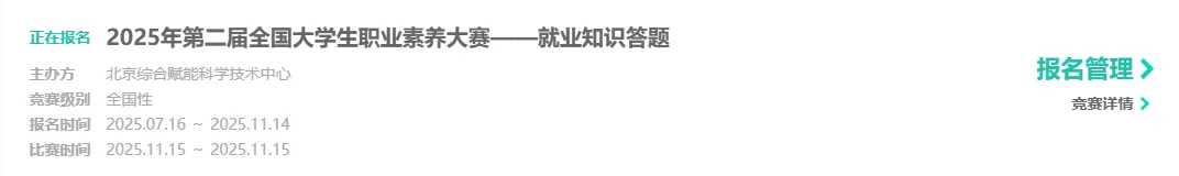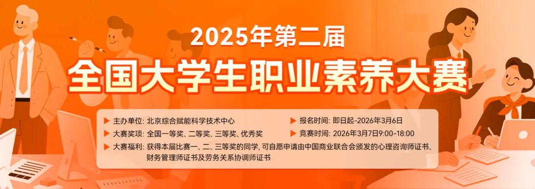 同时,大学期间参加竞赛也是全面提升综合能力的绝佳途径。下面小编推荐的竞赛适合各年级心理学专业学生报名,获奖后即可申领由中国商业联合会颁发的心理咨询师证书。一次参赛,双证加身——不仅收获权威获奖证书,更获得高含金量的职业技能认证。无论未来考研深造还是求职就业,这份经历都将为你的履历增添亮眼的一笔!