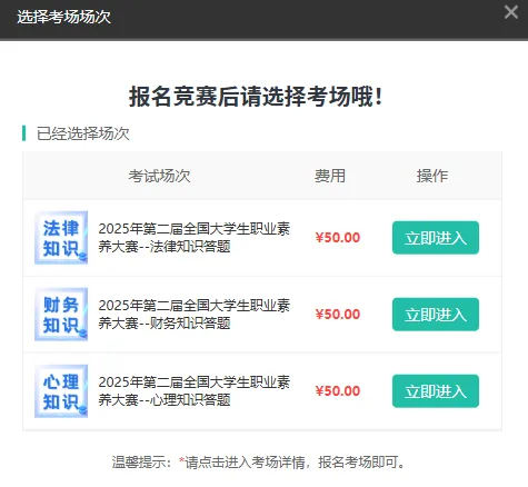 3、选择已报名考场点击【立即进入】,即可开始练习!
