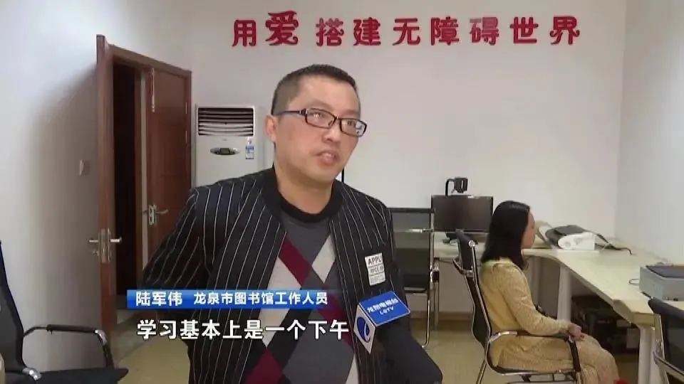 龙泉市图书馆工作人员陆军伟说:“我们图书馆在2016年就建立了视障阅览室,她也挺努力的,视听资料放在这里,基本上一学就是一个下午。”