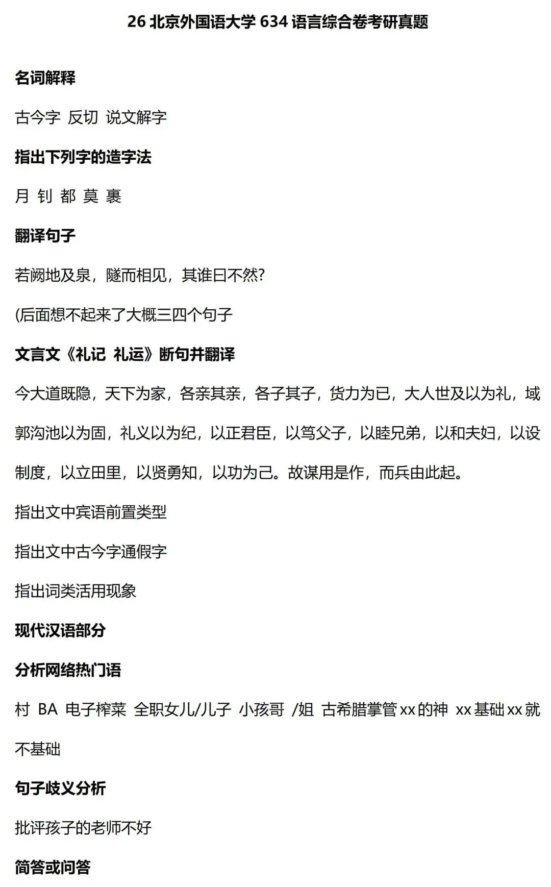 最后还需要特别注意的是,北京外国语大学对于外国语言文学以及中外的文学、文化交流有着非常明显的兴趣,相关题目出现的很多,大家要注意一下这个方向。