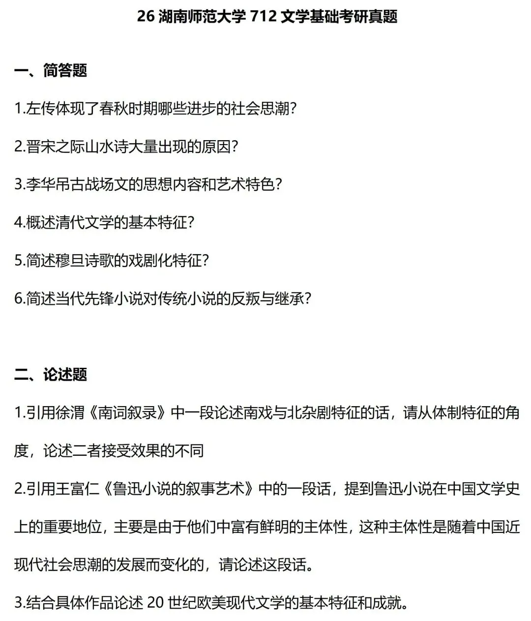 从考查内容来看,整体看下来,湖南师范大学对于文艺学明显更加重视,整体分值占比最高,所以报考湖南师范大学,一定要注意文艺学的学习。而文学史三个科目中,古代文学分值占比最高,题型也全部都是简答题和论述题,是要重点关注的科目。