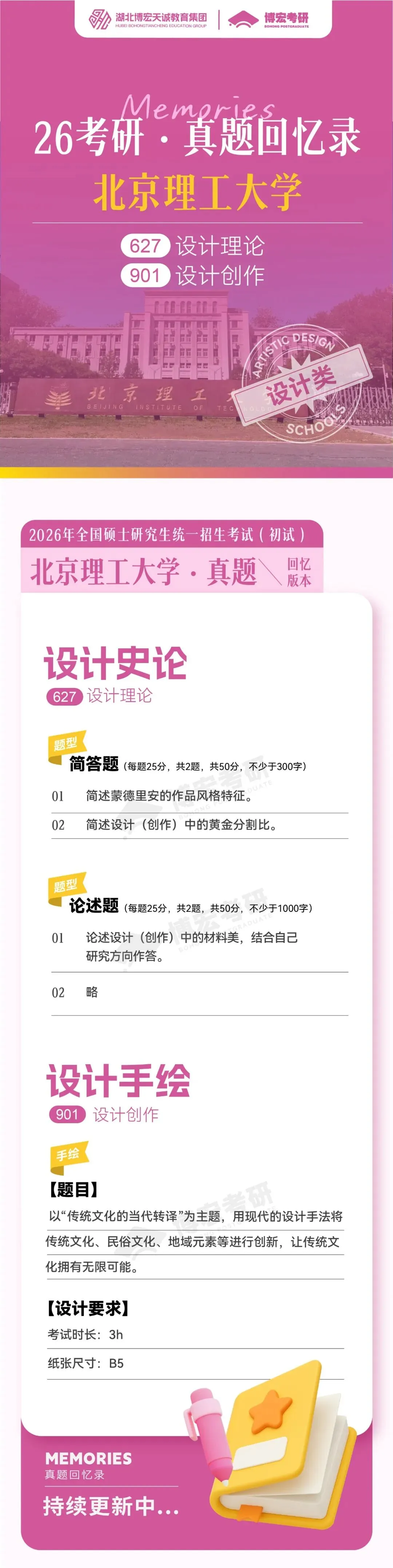 26考研·真题回忆录|北京理工大学 |627设计理论/901设计创作