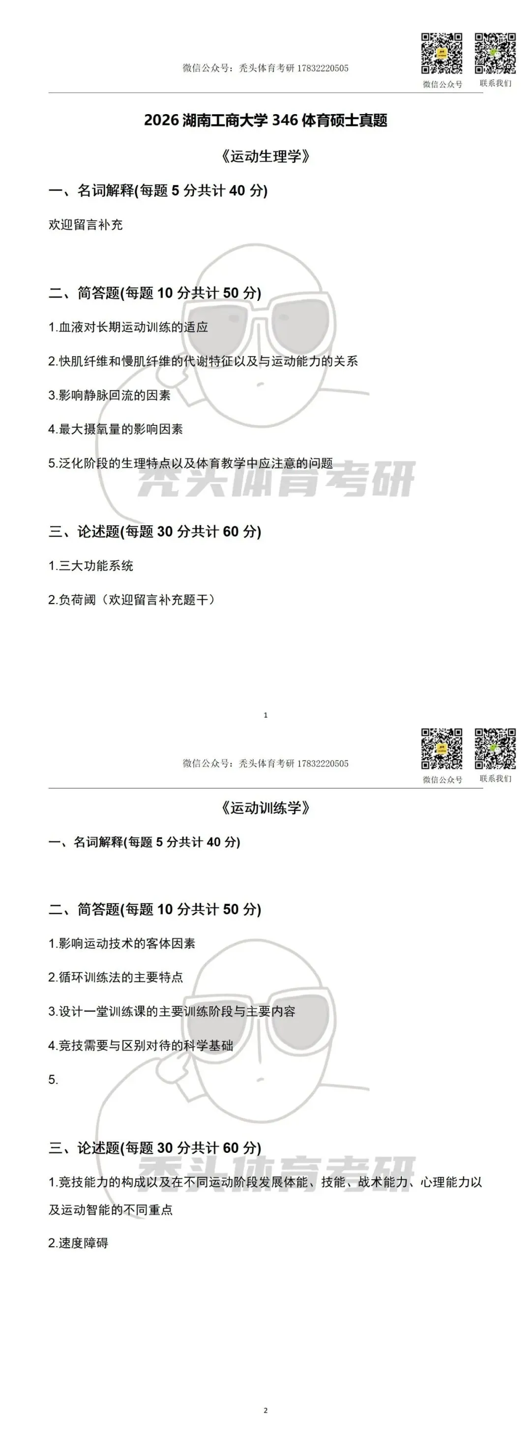 >26体育考研真题丨湖南工商大学346体育综合初试真题(2026)
