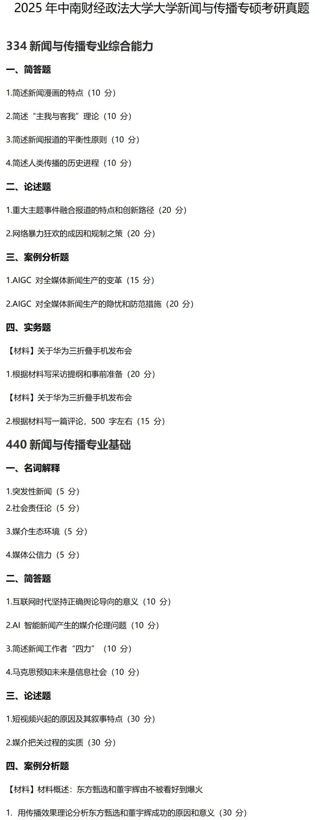>中南财经政法大学新闻与传播考研真题2016-2025历年