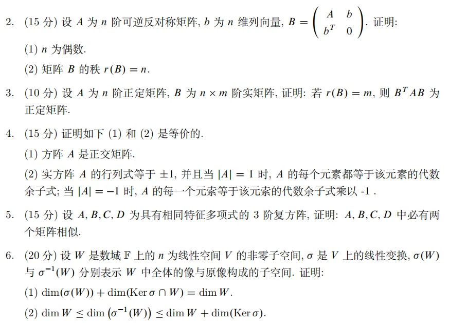 山东大学2025年高等代数考研真题