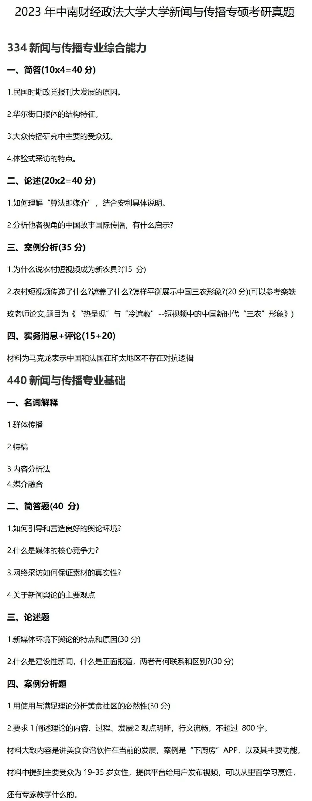中南财经政法大学新闻与传播考研真题2016-2025历年