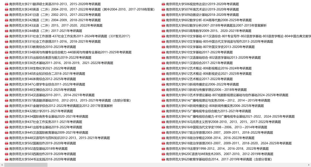 南京师范大学610文学基础-611汉语综合-801专业写作-802语言学基础-803语言学概论-804中国古典文献学-805外国文学史2018-2025年考研真题