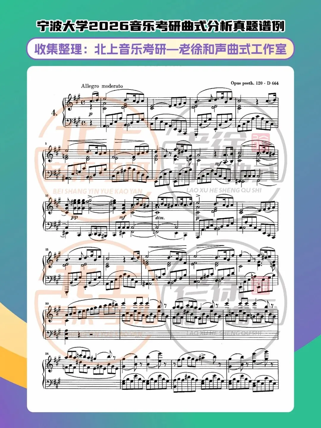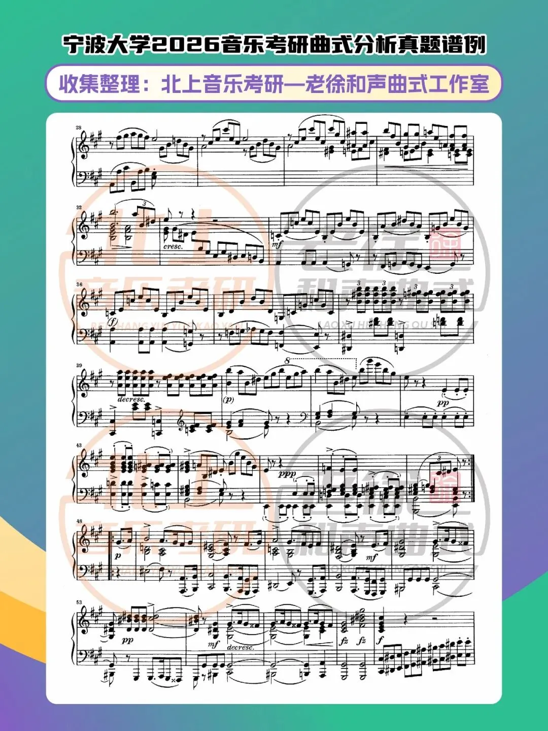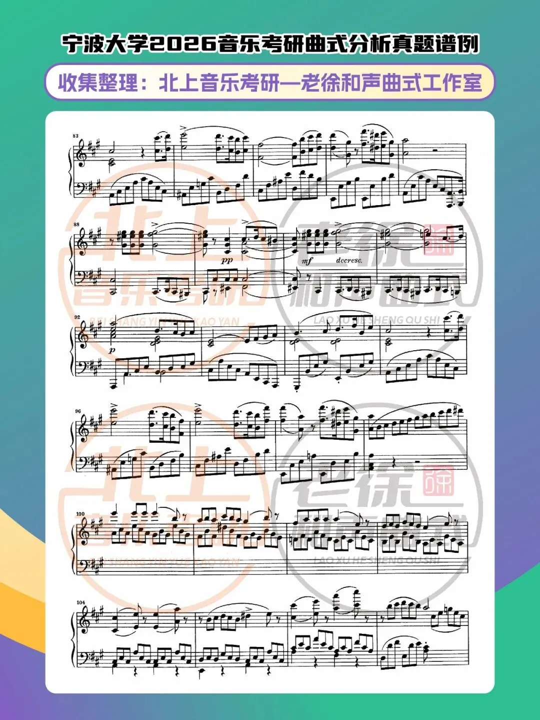 宁波大学2026音乐考研曲式分析真题谱例|北上音乐考研—老徐和声曲式工作室收集整理