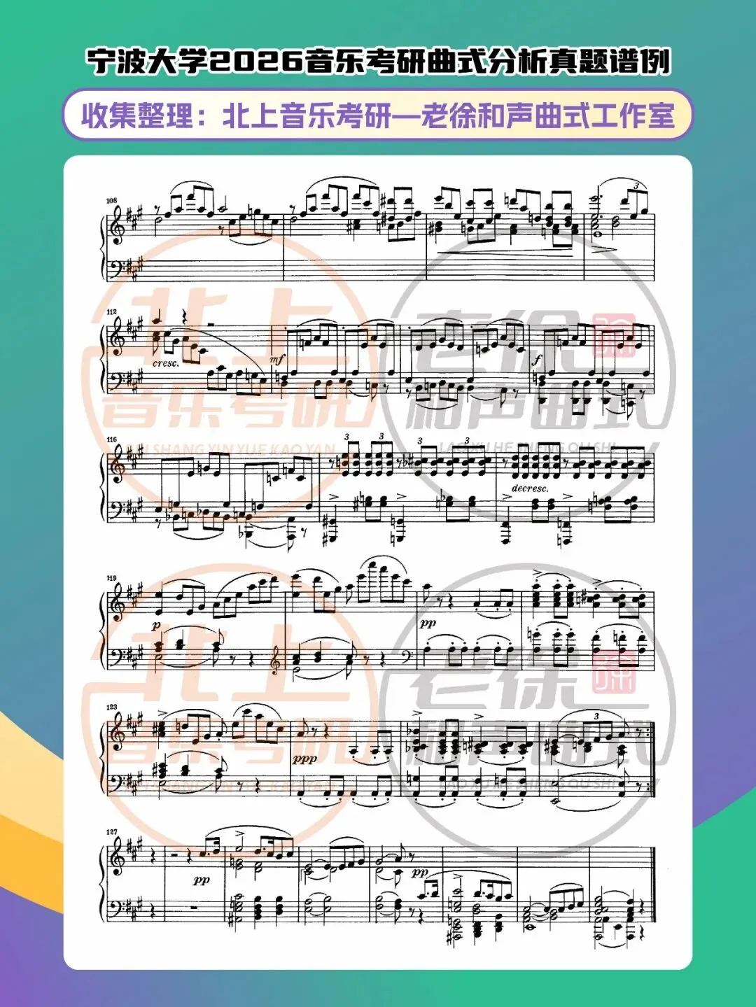 >宁波大学2026音乐考研曲式分析真题谱例|北上音乐考研—老徐和声曲式工作室收集整理
