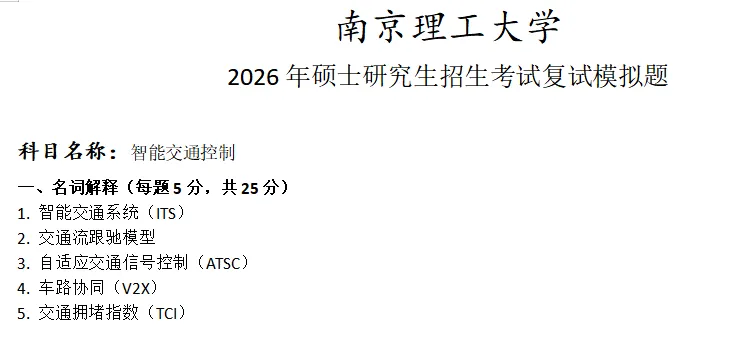 >南京理工大学智能交通控制考研复试真题模拟