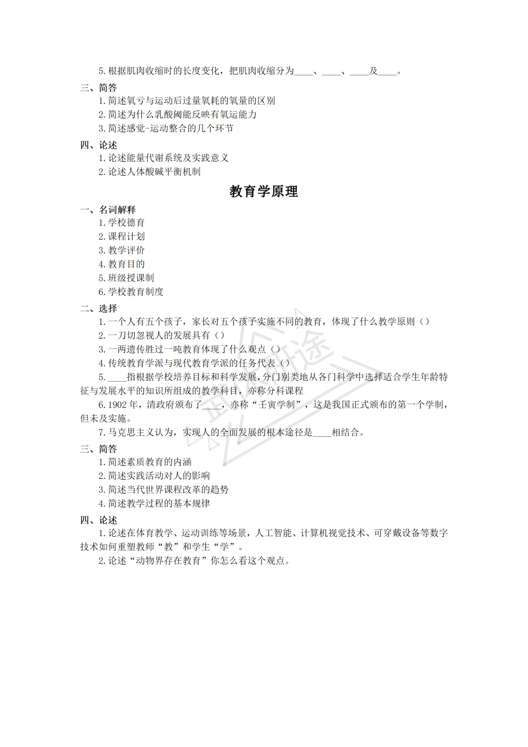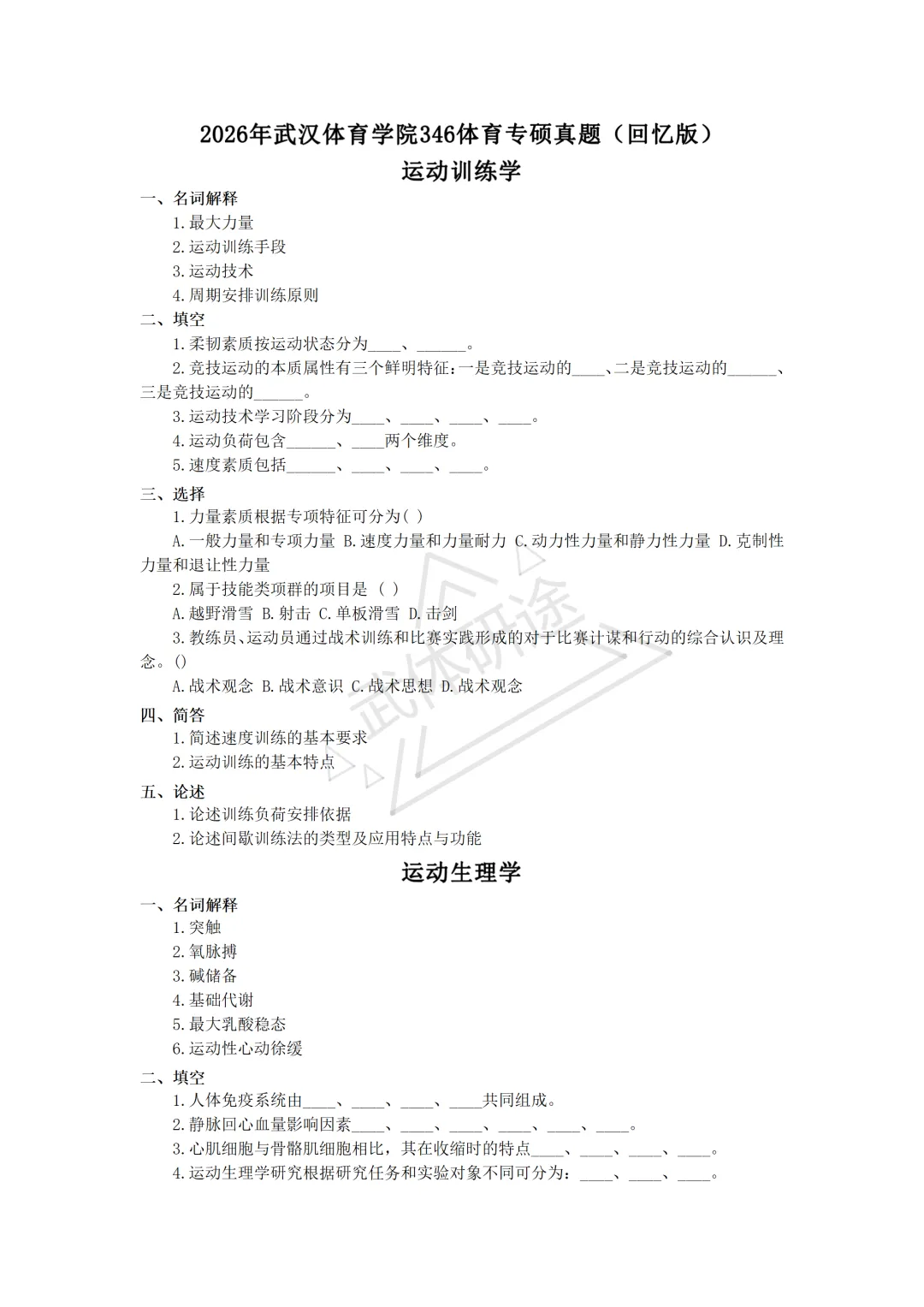 2026年武体体育学院考研346体育专硕真题(回忆版)资料分享!