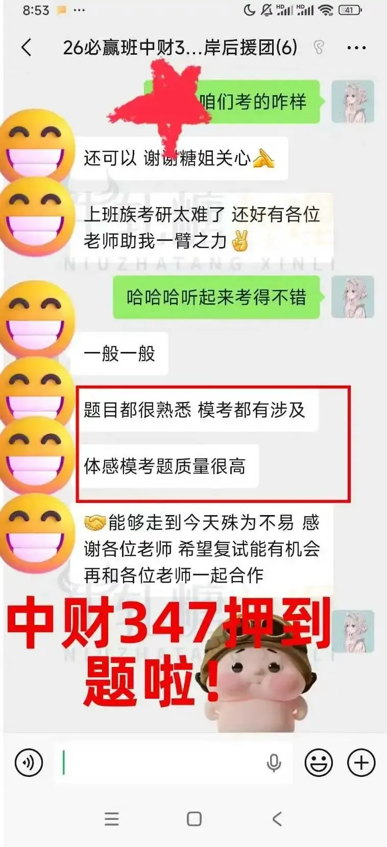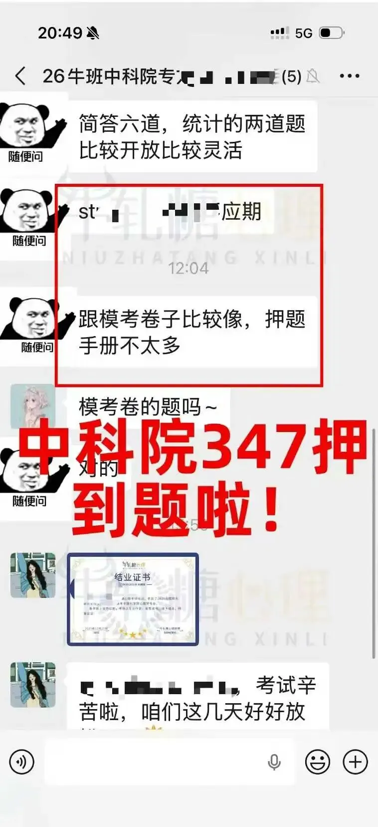 牛轧糖押题考生反馈一览: