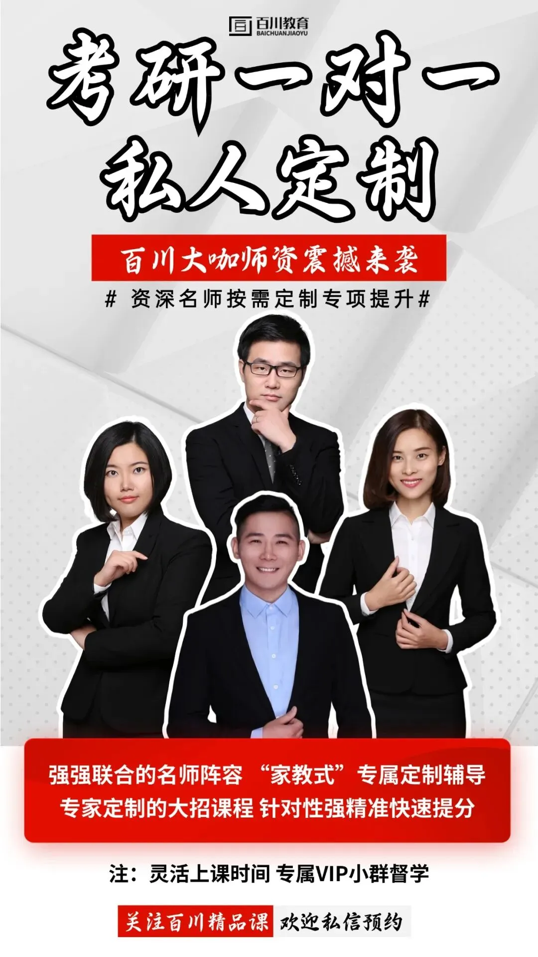 针对夸大宣传、不专业、收费贵、师资差等考研培训行业痛点,百川秉持着“高品质、低价格、优服务”的理念,推出考研专业课、公共课精品课程“一对一私人定制”辅导(含全程答疑服务)。我们为学员定制专属学习方案,强强联合的名师阵容针对性教学,帮助学员节省时间攻克学科短板,高效学习快速提升成绩。