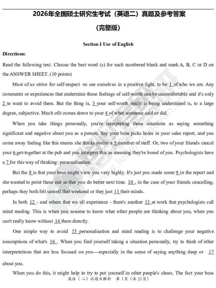 小编整理了2026年考研真题,帮助大家预计估分,快收藏吧!