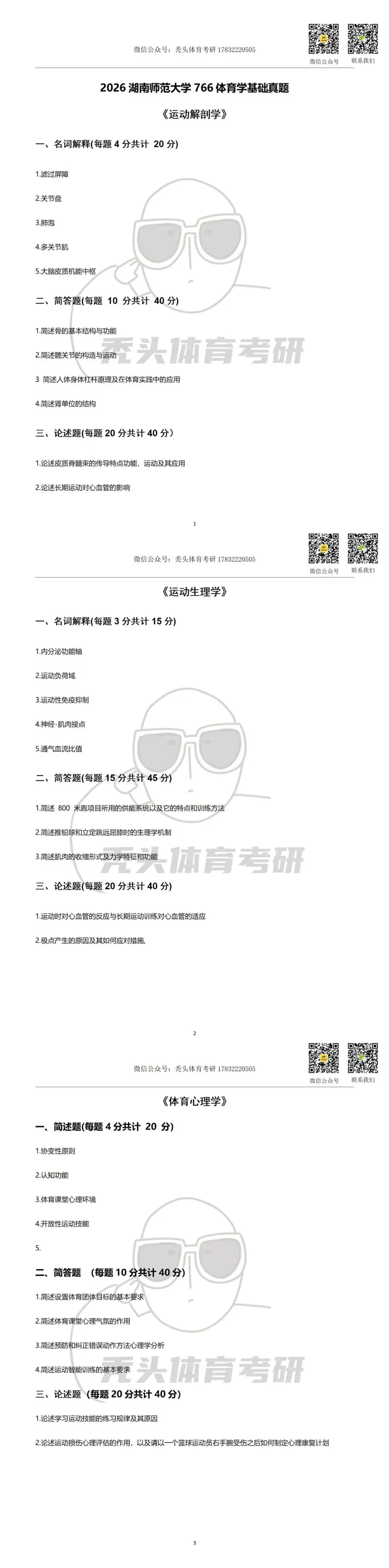 >26体育考研真题丨湖南师范大学766体育学基础初试真题(2026)