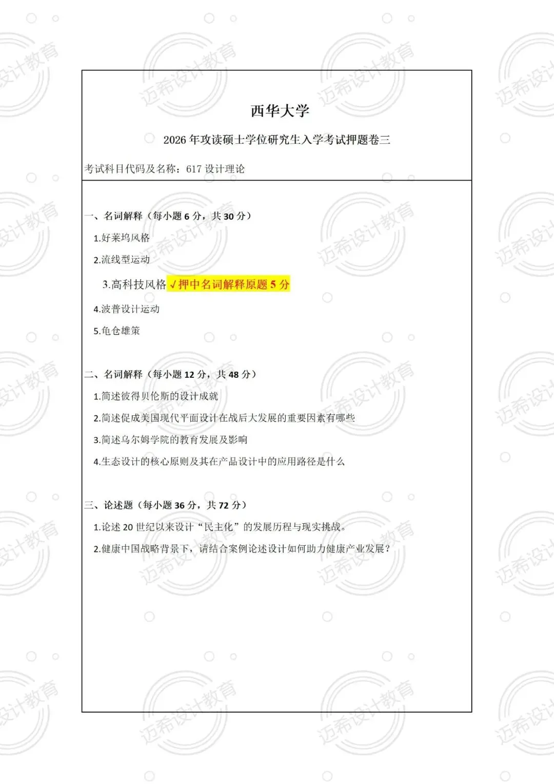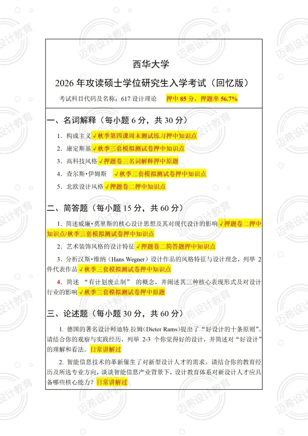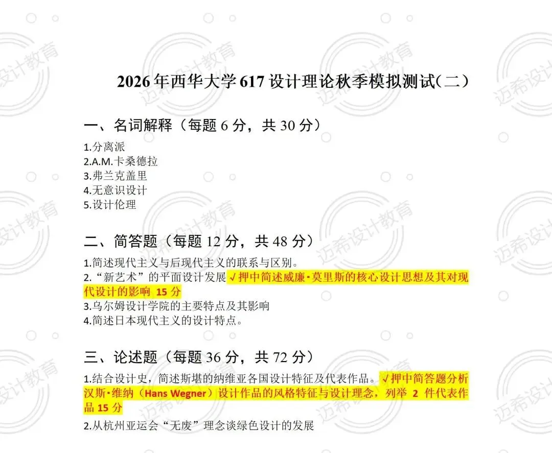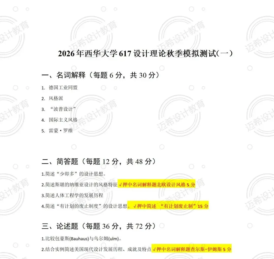 谁懂啊!西华大学 2026 届 617 设计理论考研,直接押中 85 分!押题率 56.7% 的战绩太顶了~ 来拆解这份高命中考点清单,备考的宝子直接抄作业!