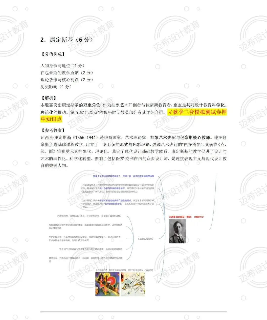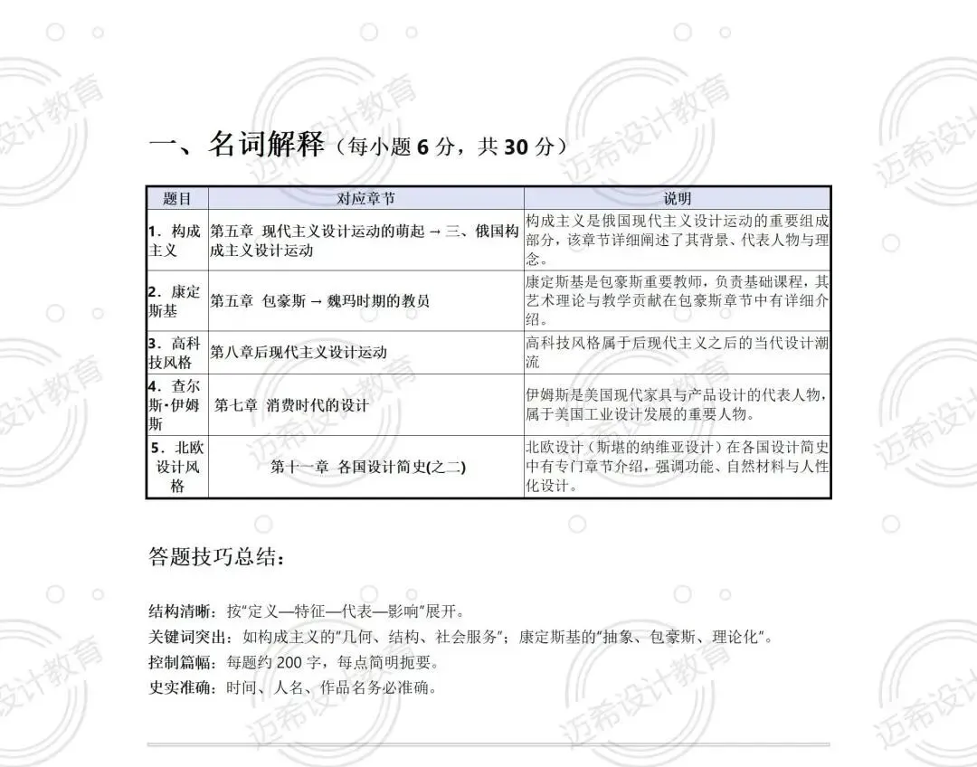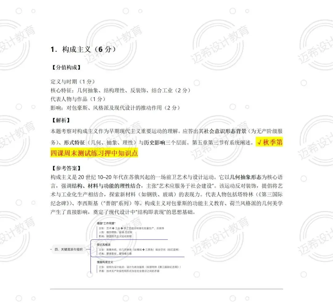 5 个考点全命中,不管是秋季测试练过的构成主义、康定斯基,还是押题卷直接原题命中的高科技风格、北欧设计风格,还有反复强调的查尔斯・伊姆斯,背过就能稳拿分,基础分直接拉满~