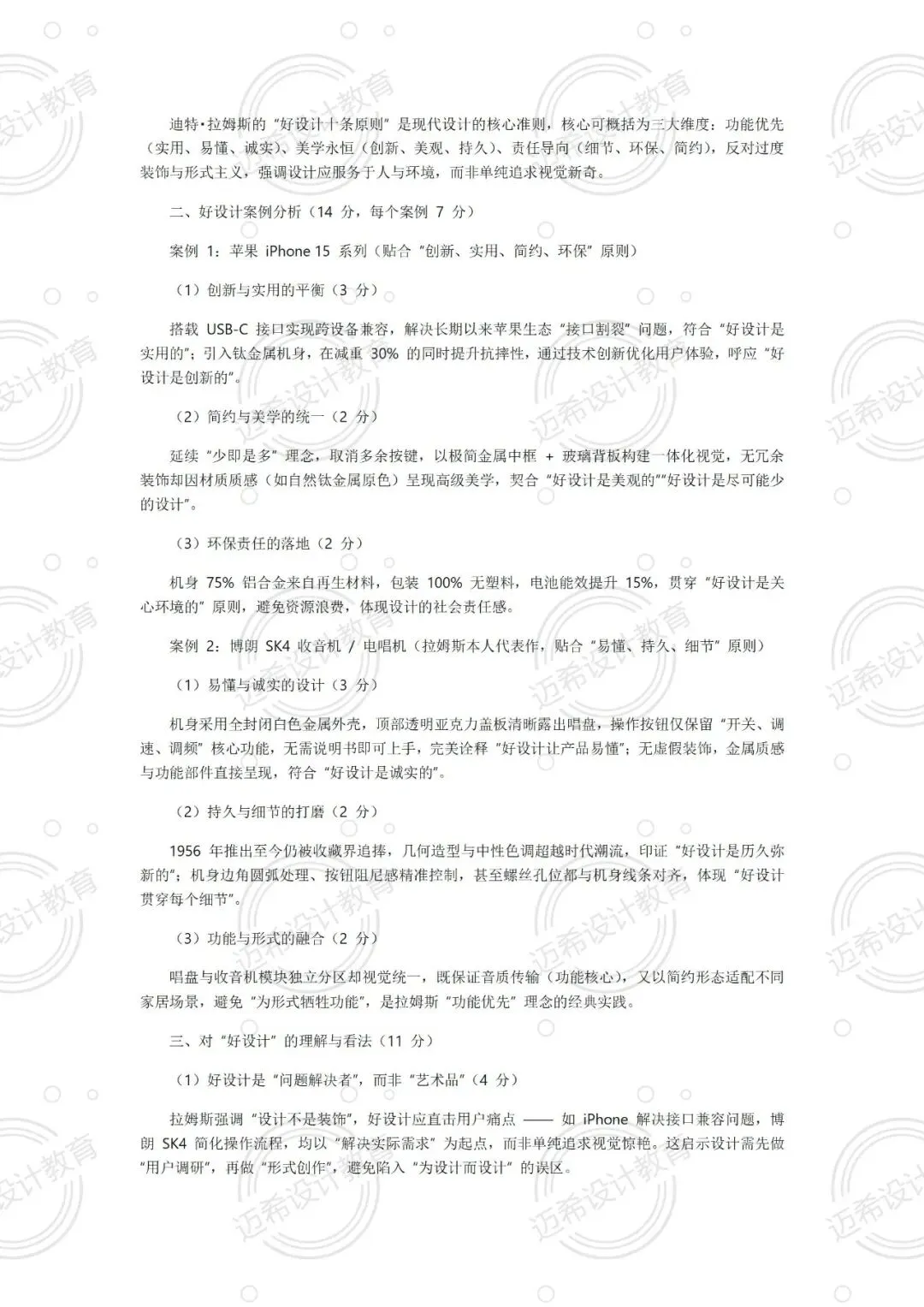 论述题一定要结合实例,比如分析好设计可以举苹果产品、宜家家具,贴合拉姆原则更有说服力~